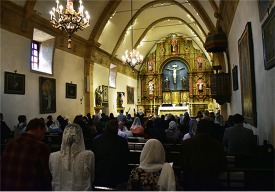Misa Tradicional en la Basílica de San Carlos Borromeo, abajo, capilla lateral de Nuestra Señora