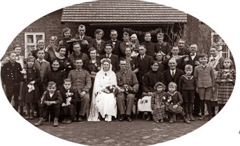 Recién casados polacos en 1939, con una gran familia extendida para brindarles apoyo.