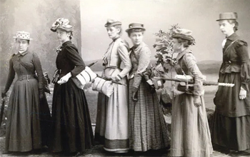 Estas imágenes muestran el proceso de gradualismo en la vestimenta desde la década de 1870 hasta nuestros días. Inicialmente tanto la gente de sociedad cuanto campesinas vestidas modestamente, arriba