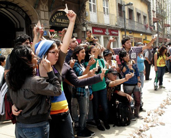 La revolución es universal: estudiantes protestando en México, arriba, en Brasil, abajo...