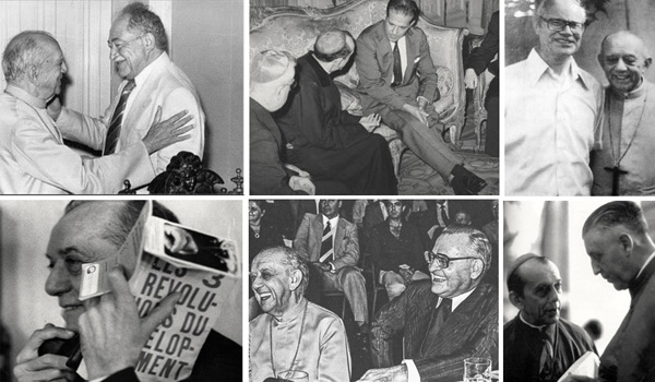 Cuarta fila, con los Papas Conciliares; Pablo VI solía llamar a Helder Camara "mi arzobispo rojo". Filas quinta y sexta, algunas tomas de sus gestos demagógicos que caracterizaron su forma de hablar.